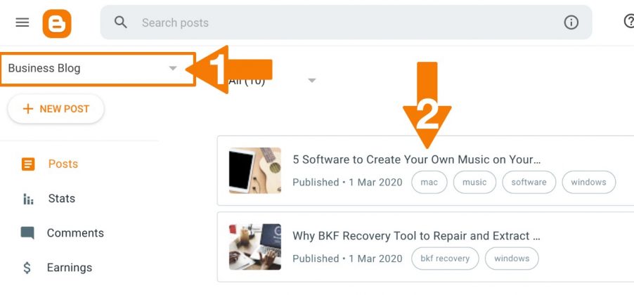 - Click on the Posts tab. It is available on the left sidebar. You see the published posts.