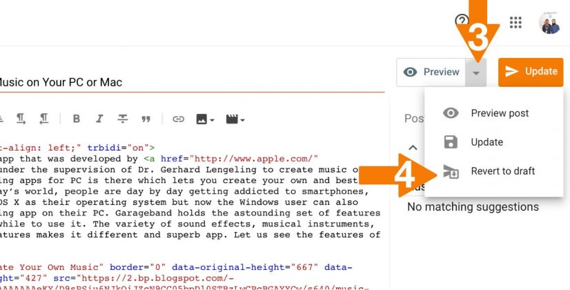 - You will see a drop-down attached with the Preview button. Click on the Revert to draft option.